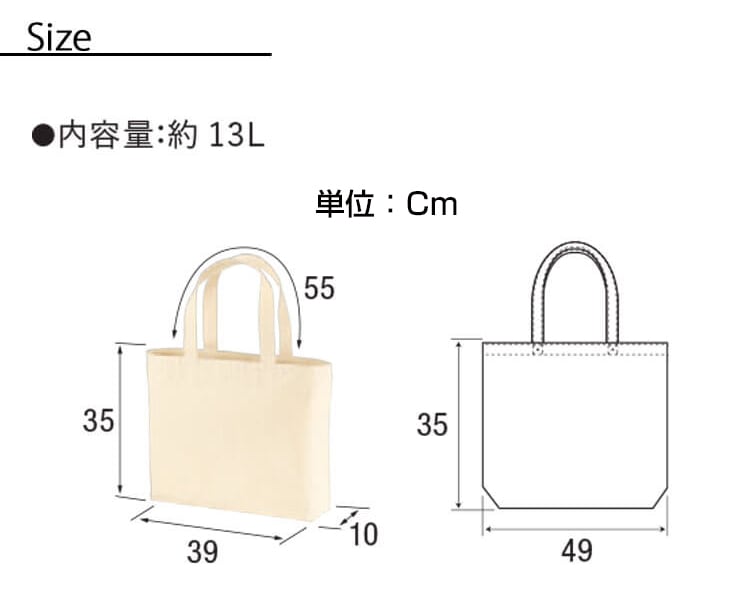 長い持ち手で肩掛けがしやすい、13Lの大容量トートバッグです。